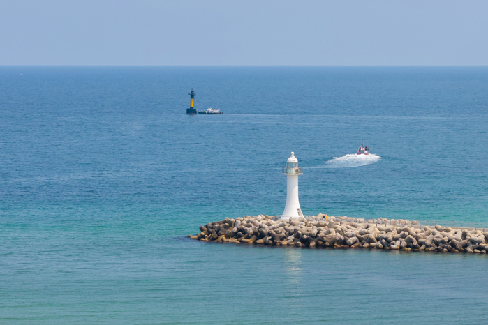 넓고 이용하기 쉬운 곳은 정동진역 앞의 해변과 모래시계공원 앞의 바다이다.